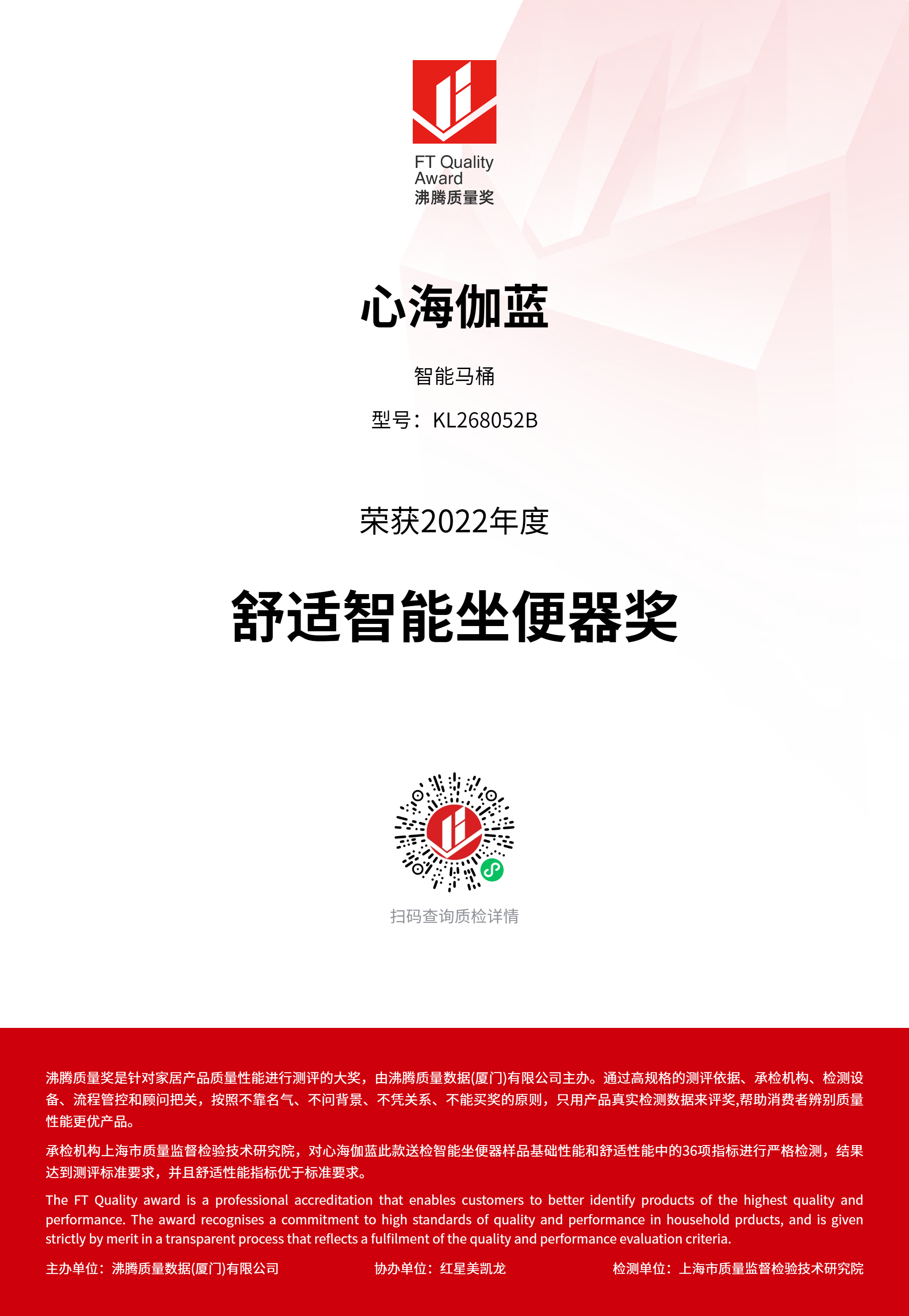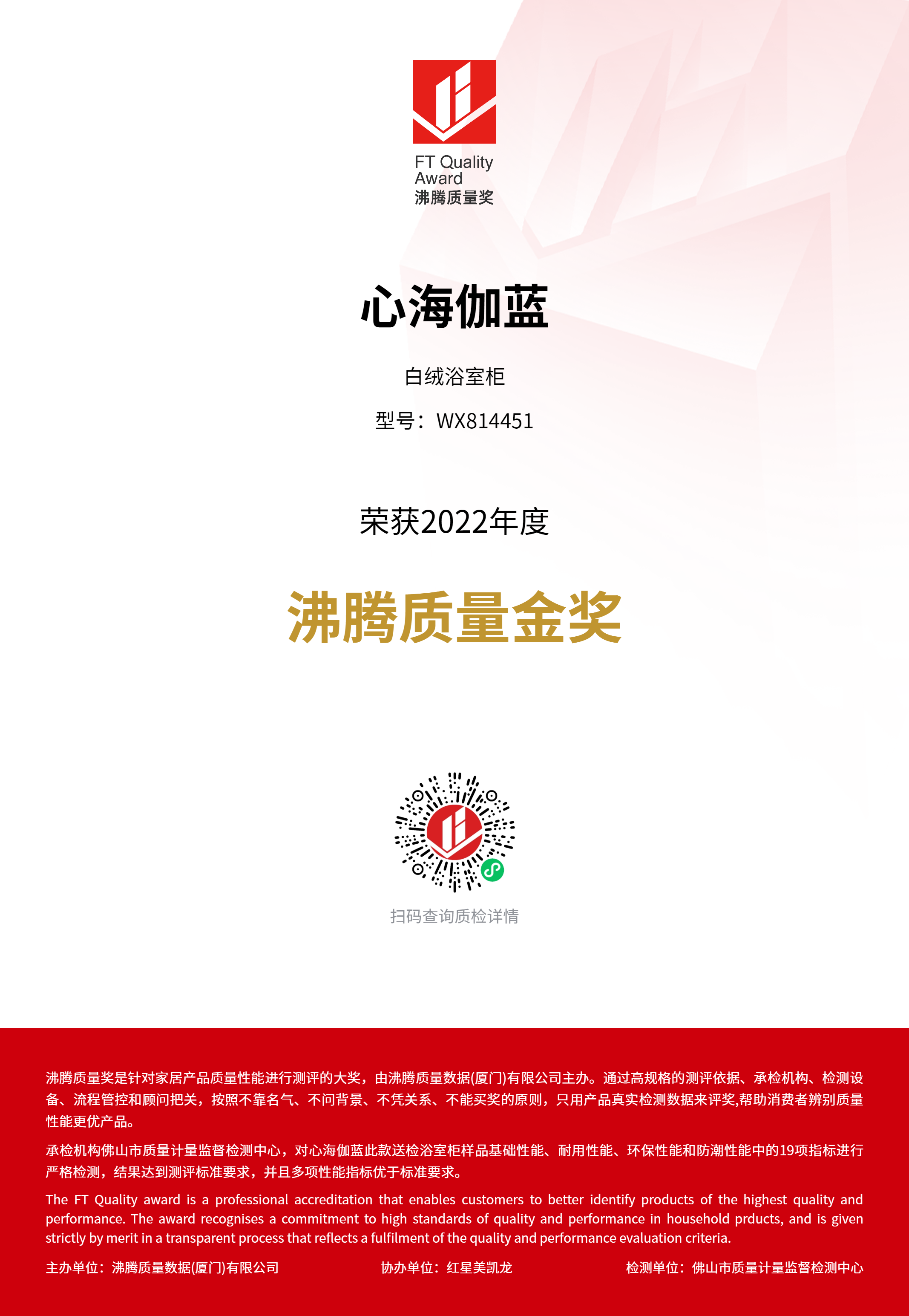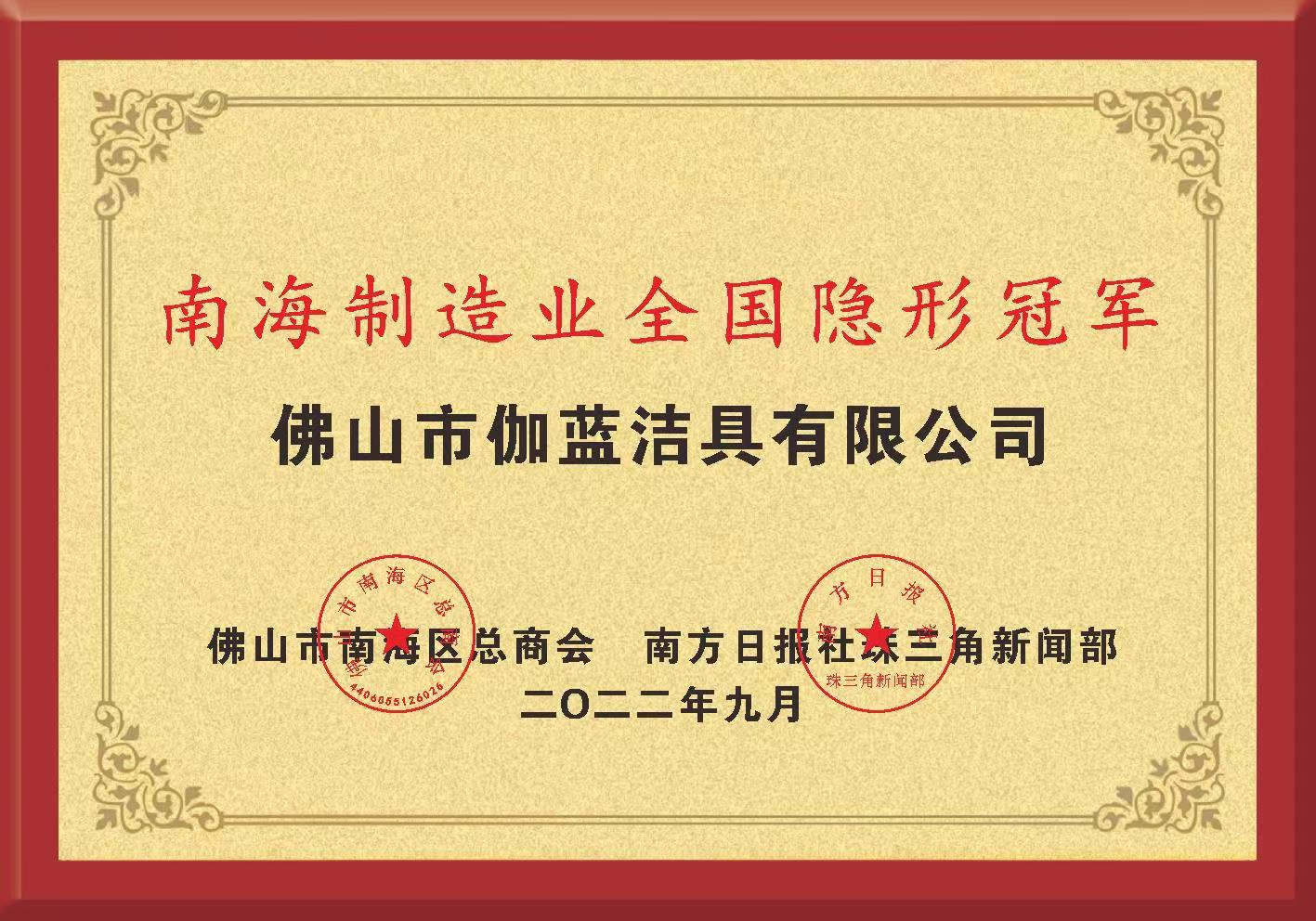 心海伽蓝先后荣获高新技术企业、广东省名牌产品、广东省守合同重信用企业、佛山标准企业、南海制造业全国隐形冠军、佛山优品、产品设计金象奖、红棉中国设计奖、沸腾杯、工匠楷模奖等多项国家级、省级行业级奖项,树立行业标杆,引领着行业的发展。