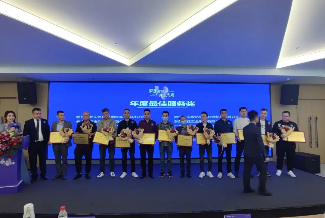 在供应商颁奖环节,伽蓝洁具对共计23家供应商颁发了奖项。潮州市潮安区雅格陶瓷实业有限公司等12家公司获得了年度最佳服务奖、佛山市南海振添卫浴型材有限公司等7家公司获得了年度卓越品质奖,广州立晟五金制品有限公司等四家公司获得了年度价值共创奖。