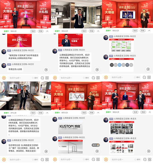 在本次全国线上招商会上,心海伽蓝、雅颂卫浴和凯庭淋浴房各品牌营销总监都详细讲解了其品牌发展历程、产品品质工艺及市场发展前景等,