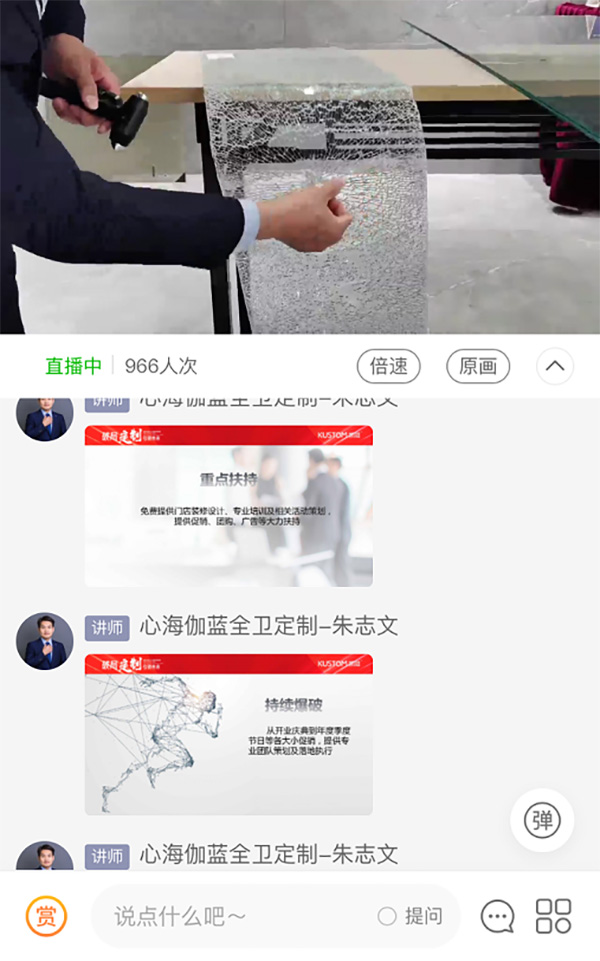 现场更是通过对淋浴房做安全性能实验,让直播间的经销商们大开眼界的同时,也让大家对产品质量和企业不断创新的精神给予了高度赞赏,并对加盟伽蓝洁具旗下品牌的发展前景充满了期待。