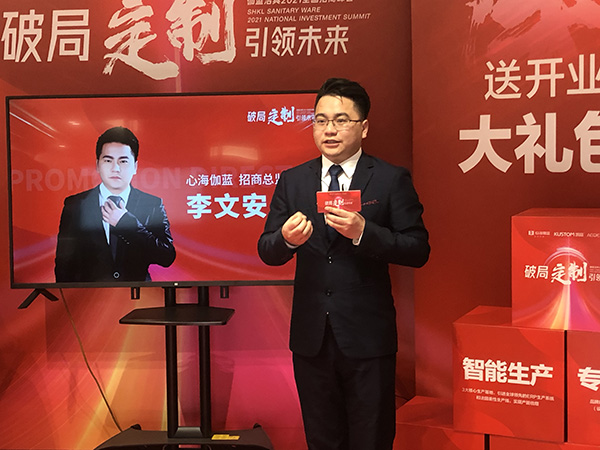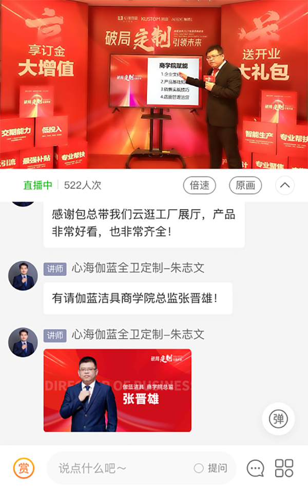 为让直播间的意向经销商伙伴们能够直观且深入了解产品,心海伽蓝营销总监包国锋带着大家云逛展厅,
