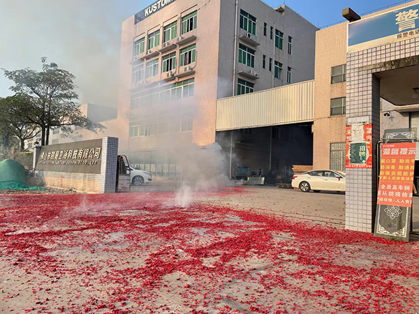 爆竹声声好运来,响亮的鞭炮声预示着伽蓝公司在新的一年里红红火火,牛气冲天!