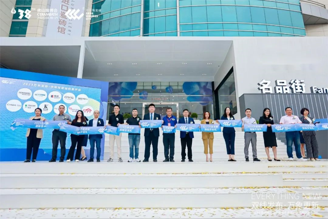 中国建筑卫生陶瓷协会秘书长宫卫、中国陶瓷工业协会常务理事长吴越申,佛山中陶城集团总裁余敏为群新开业发布仪式致开场词,助力新品牌焕新入驻。其间,各领导大伽见证新品发布与新形象揭秘。