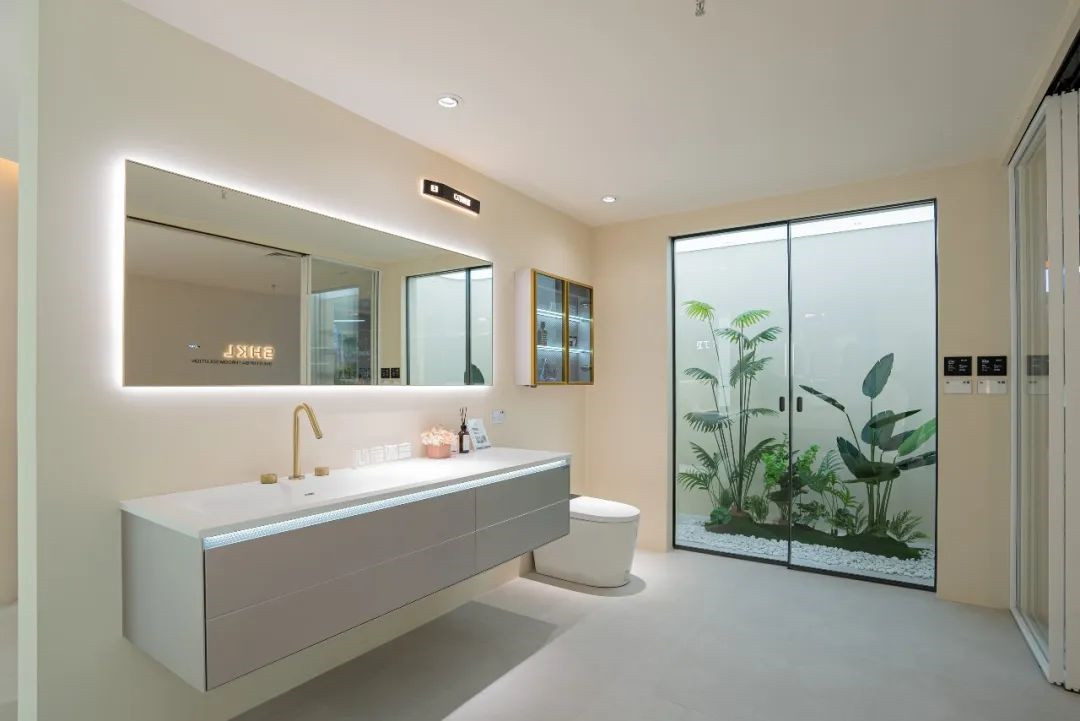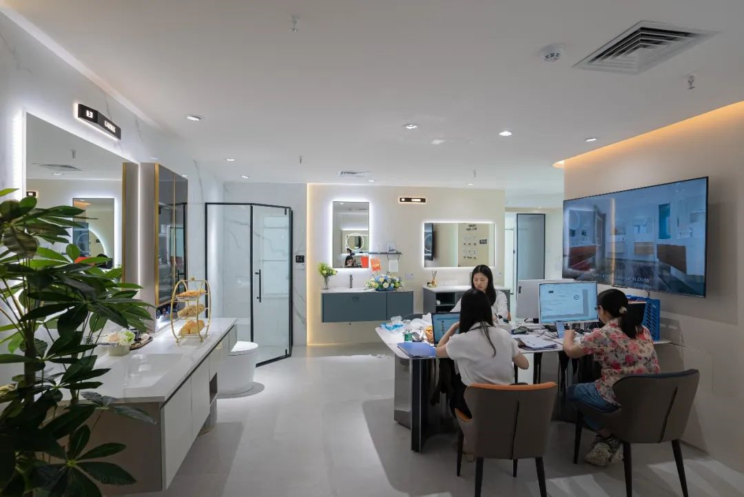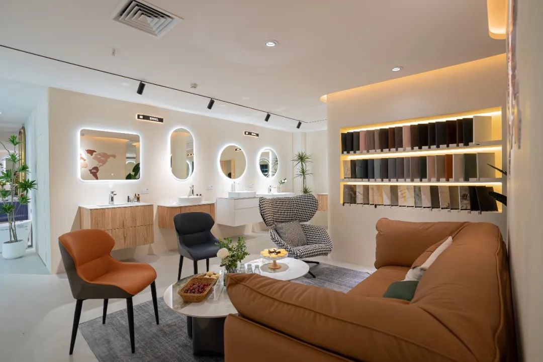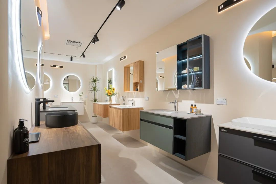 新店全新升级,设计更人性化,动线更清晰,产品分区更合理。店面自然清新,分为国内浴室柜专区、海外浴室柜区域、夹胶玻璃淋浴房,样板间,洽谈办公区等几大区域,新品摆放井然有序,灵动清新的设计符合年轻人群对舒适生活方式的追求理想。