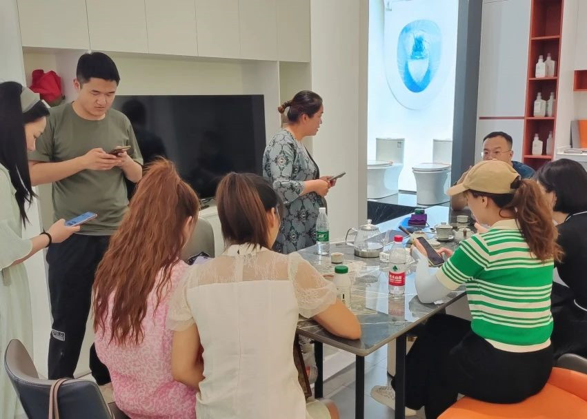 在充实的产品课程安排下,伽人们学习了浴室柜、陶瓷五金、淋浴房、智能镜、智能马桶,阳台柜在内的卫浴产品知识,并参观佛山旗舰展厅在销售实战中运用所学内容。
