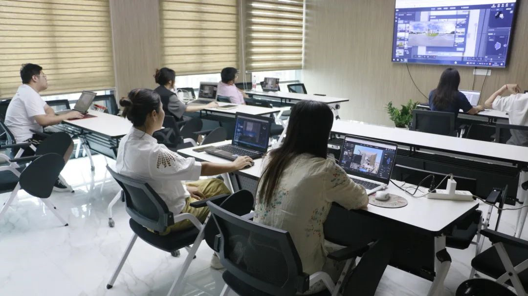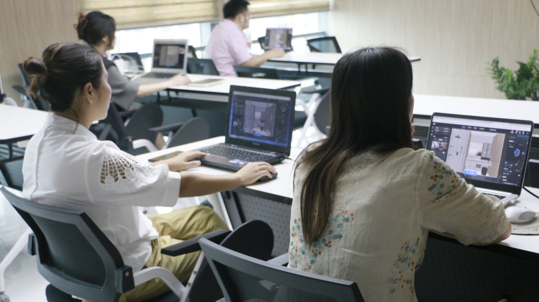 培训现场,学员们积极学习并实践操作酷家乐软件,从基础操作至渲染出图,从空间搭建到设计下单,学员们逐步提升设计基础能力与应用技能,以期驱动终端营销业绩提升。