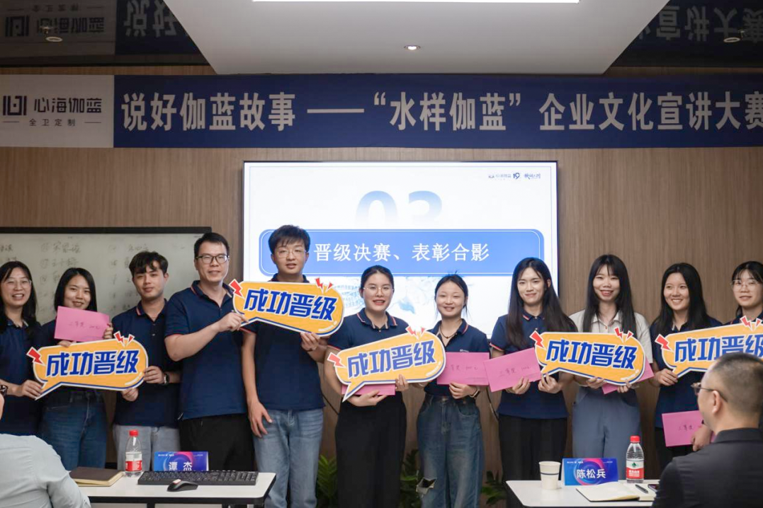 水样伽蓝的企业文化宣讲从5月开始,董事长助理谭杰向全体伽蓝人展现了水样伽蓝的核心内涵,宣讲大赛初赛分别从清远基地与佛山营销中心进行。其间,心海伽蓝迎来了2023届高校毕业生,他们在一个月的集中培训里迅速了解了伽蓝的组织架构与文化内涵,并全员参与宣讲大赛,展现了对水样伽蓝内核的理解与感悟。经过两场初赛的激烈比拼,共计20名伽人分为5组参与决赛,通过演讲+回答两部分展现风采。