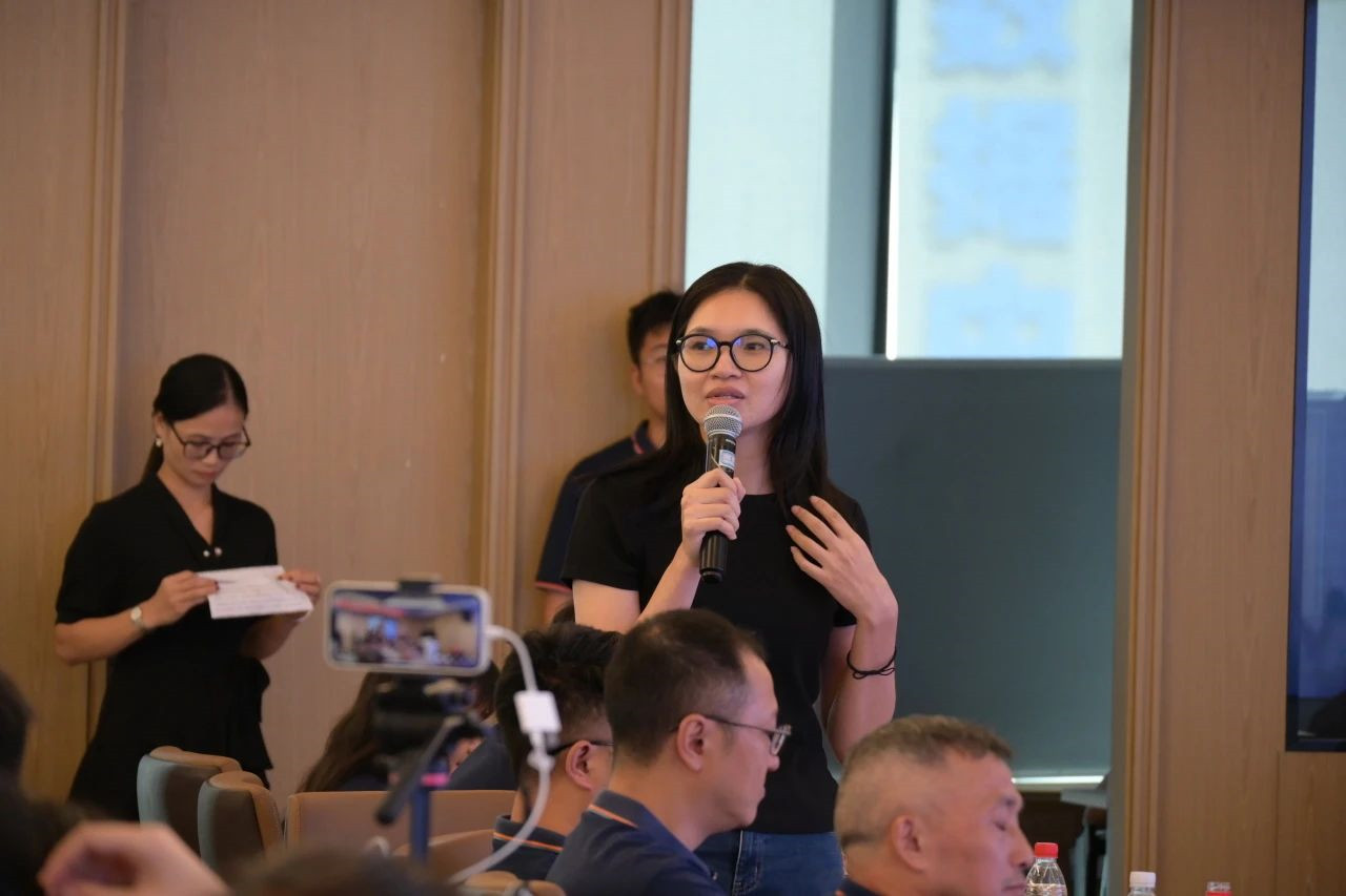 评委老师(董事长张爱民、副总经理陈松兵、董事长助理谭杰、艾素出口总经理骆飞萍、清远伽蓝全卫定制生产总监温伟东,赢伽电商运营总监刘东贤)分组点评时,针对每位选手演讲的内容与表达、表演技巧与状态做以点评,结合自身故事、接地气,案例支撑与主题鲜明等关键词多次被提及。同时,评委们激励选手不断树立自信、积累经验。