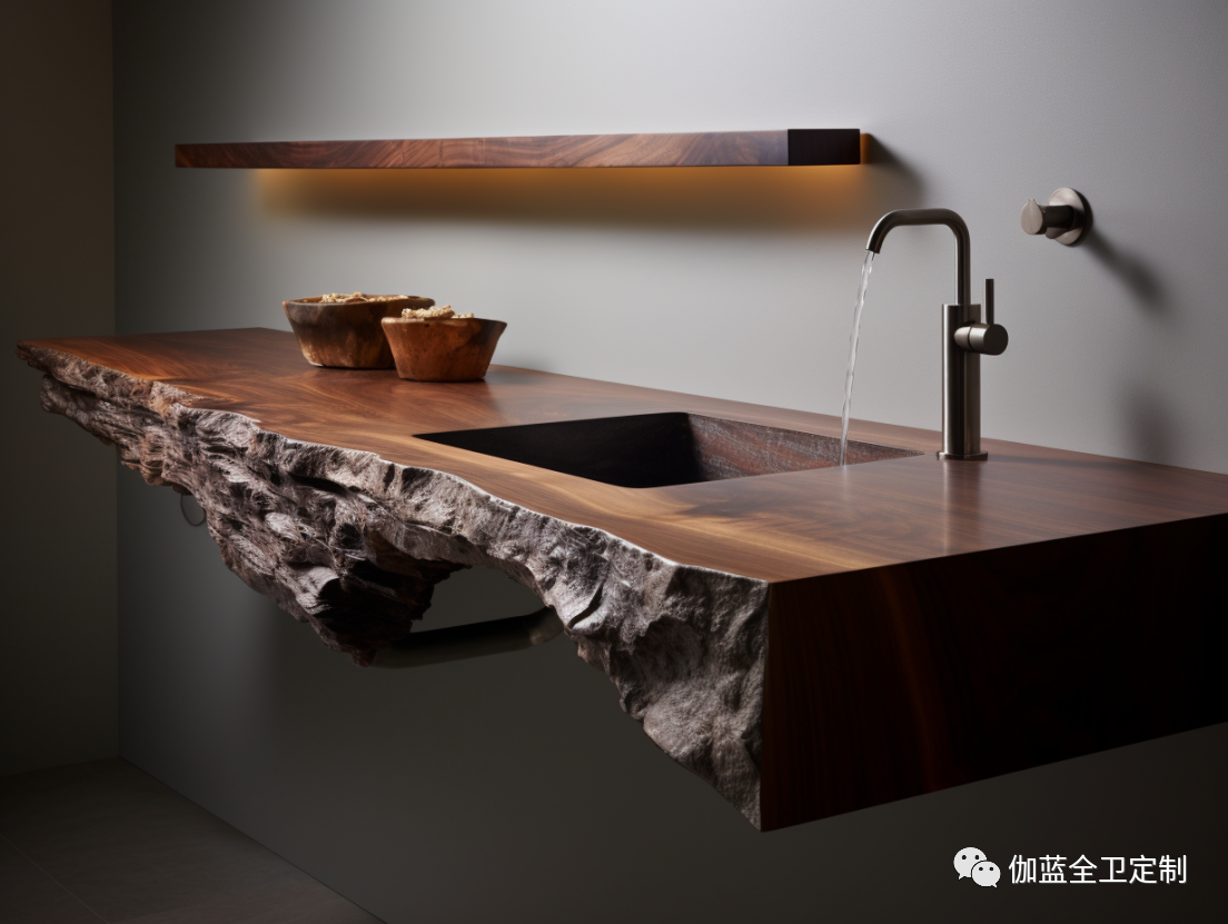 当我们将这种独特的胡桃木设计哲学融入到浴室柜中,便创造了一个更加令人陶醉的浴室体验。这不再是一个普通的浴室柜,而是一件精致的艺术品,将自然之美与卓越工艺融为一体。