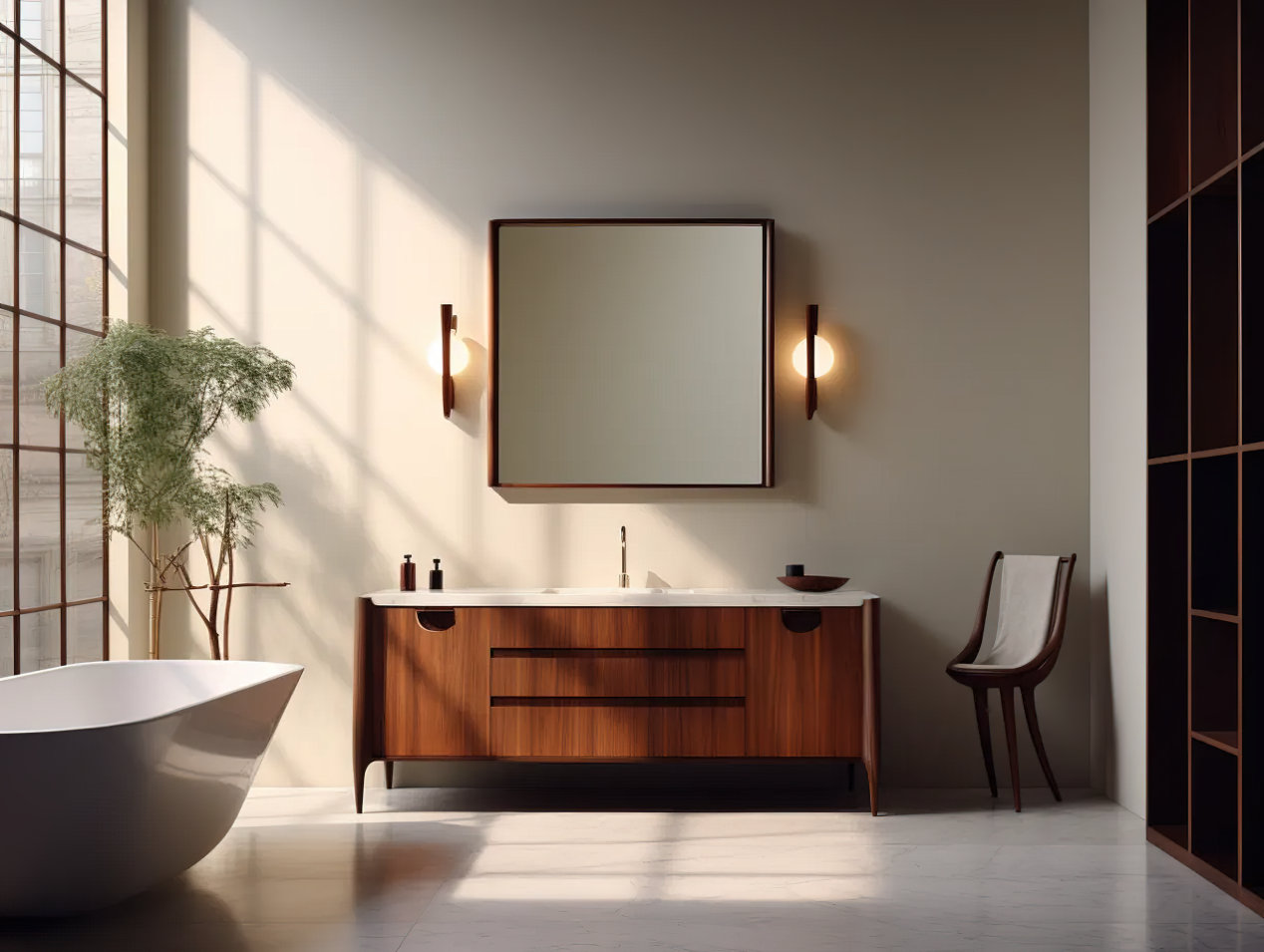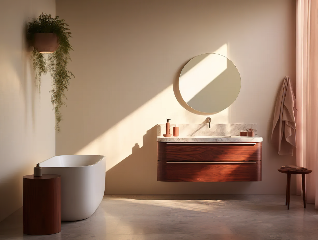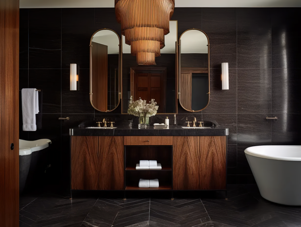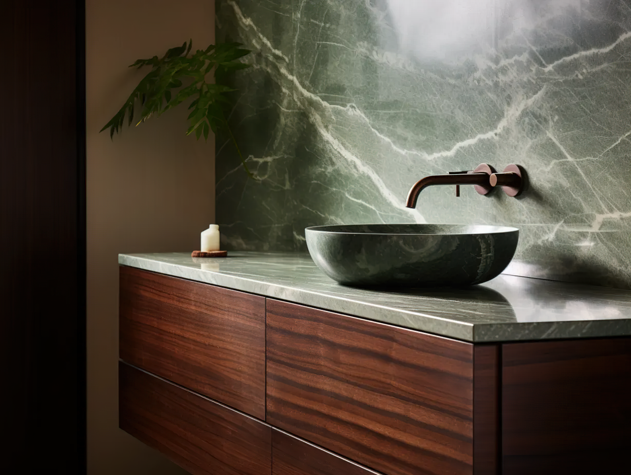 其优雅的色彩与大理石台面相得益彰,为卫浴空间增添了温暖和尊贵感。