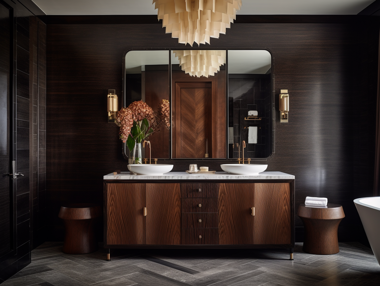 卫浴空间设计,不仅关乎功能,更是关于细节和材质的完美融合。花梨木制浴室柜,独特的木质纹理展现出其特有的自然之美。每一处纹路都是大自然的杰作,让空间充满温暖和质感。