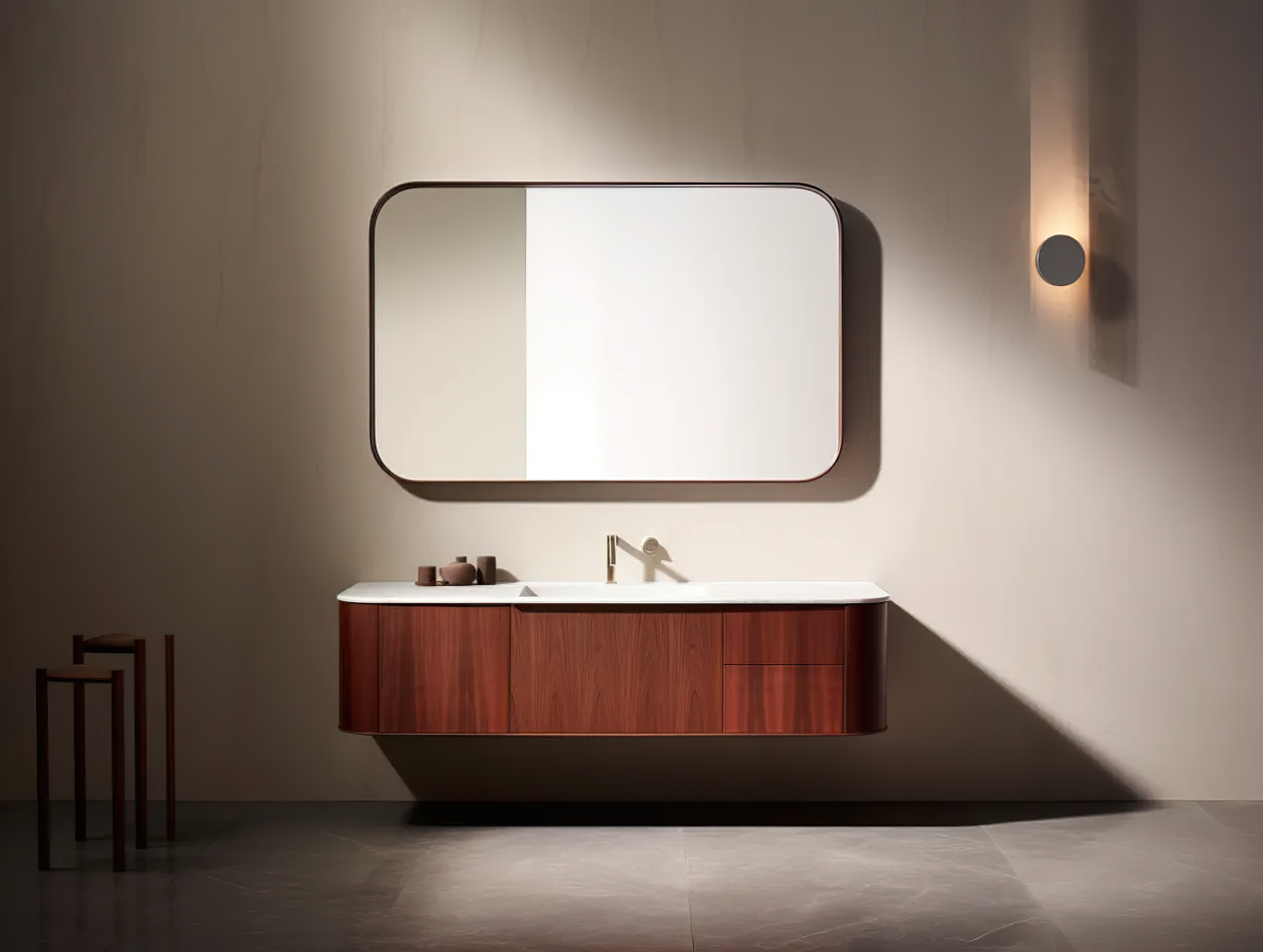 在卫浴设计中,材质选择是塑造空间特色的重要一环。花梨木制浴室柜,以其精致纹理和高贵气质成为设计师们钟爱的选择之一。