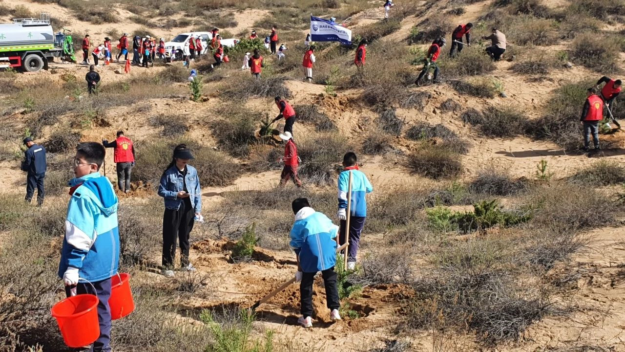 从2017年开始,伽蓝洁具已在榆林地区投入大量资源,种植了数千棵苗木,以实际行动对抗当地的沙尘暴等恶劣天气。在今年的植树活动中,伽蓝人与学校师生共同在春日的土地上种下新的希望,每一棵苗木都寄托着对未来生态环境的美好愿景。