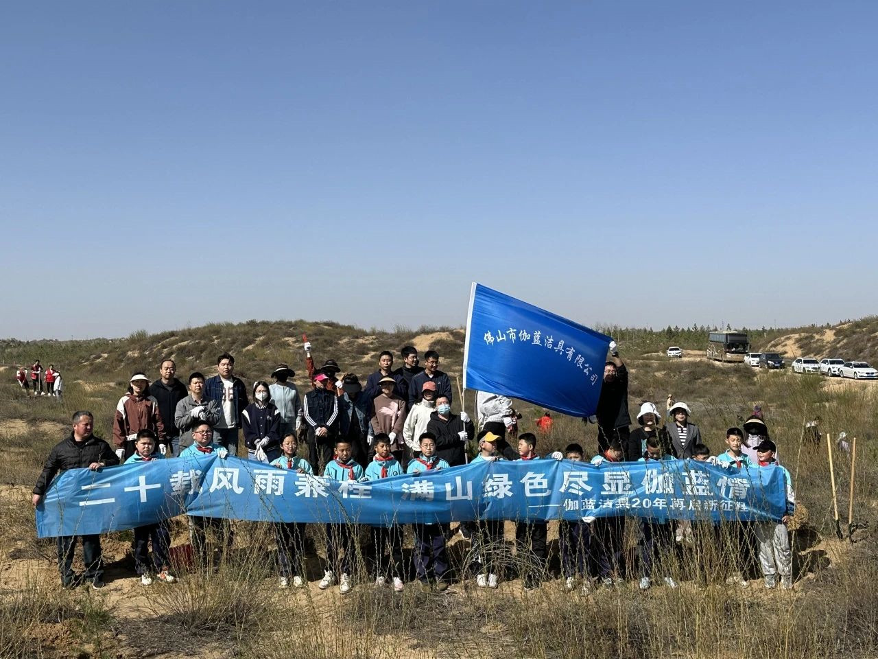 今年,伽蓝洁具迎来20周年生日,同时亦是与榆林高新区第二小学携手合作的第八年,校企双方共同在榆林地区开展植树造林公益活动,造林面积达几千亩。此举不仅深化了绿水青山的生态发展理念,也展现了心海伽蓝回报自然、持续承担社会责任的坚定决心。