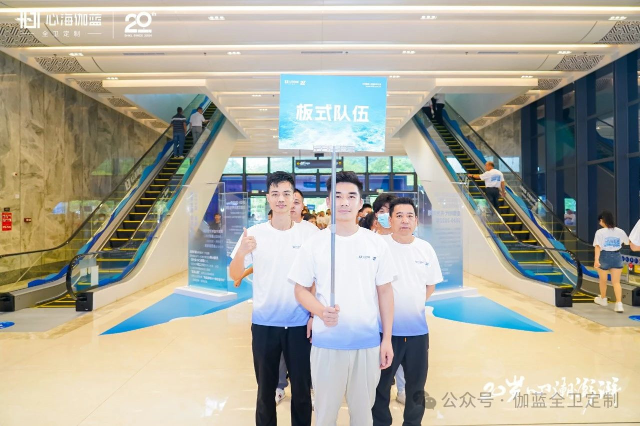 晚宴前,全体伽蓝员工分为荣誉员工、全卫、板式、智能镜和职能、赢伽电商、凯庭,雅颂艾素总部等七支队伍,伽蓝人踏着整齐的步伐依次进行检阅仪式,精神抖擞地迎接着伽蓝20周年的到来。