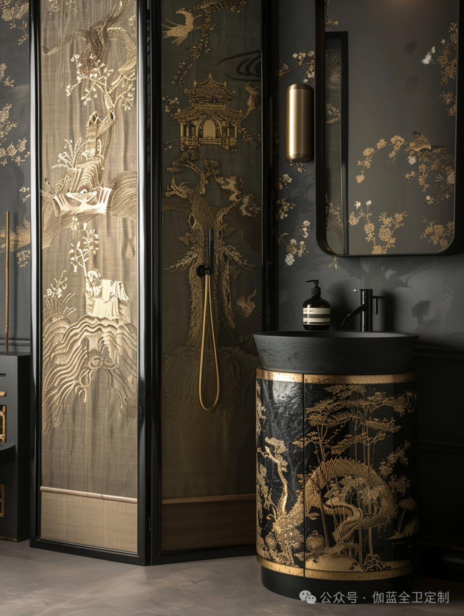 在这三类设计中,我们看到了原木材质与传统工艺的完美结合。无论是雕刻的细腻,镀金的华丽,还是漆器的雅致,每一个细节都体现出设计师对美学的追求和对传统文化的尊重。这些浴室不仅仅是实用的空间,更是艺术的呈现,带给我们无限的灵感和惊喜。