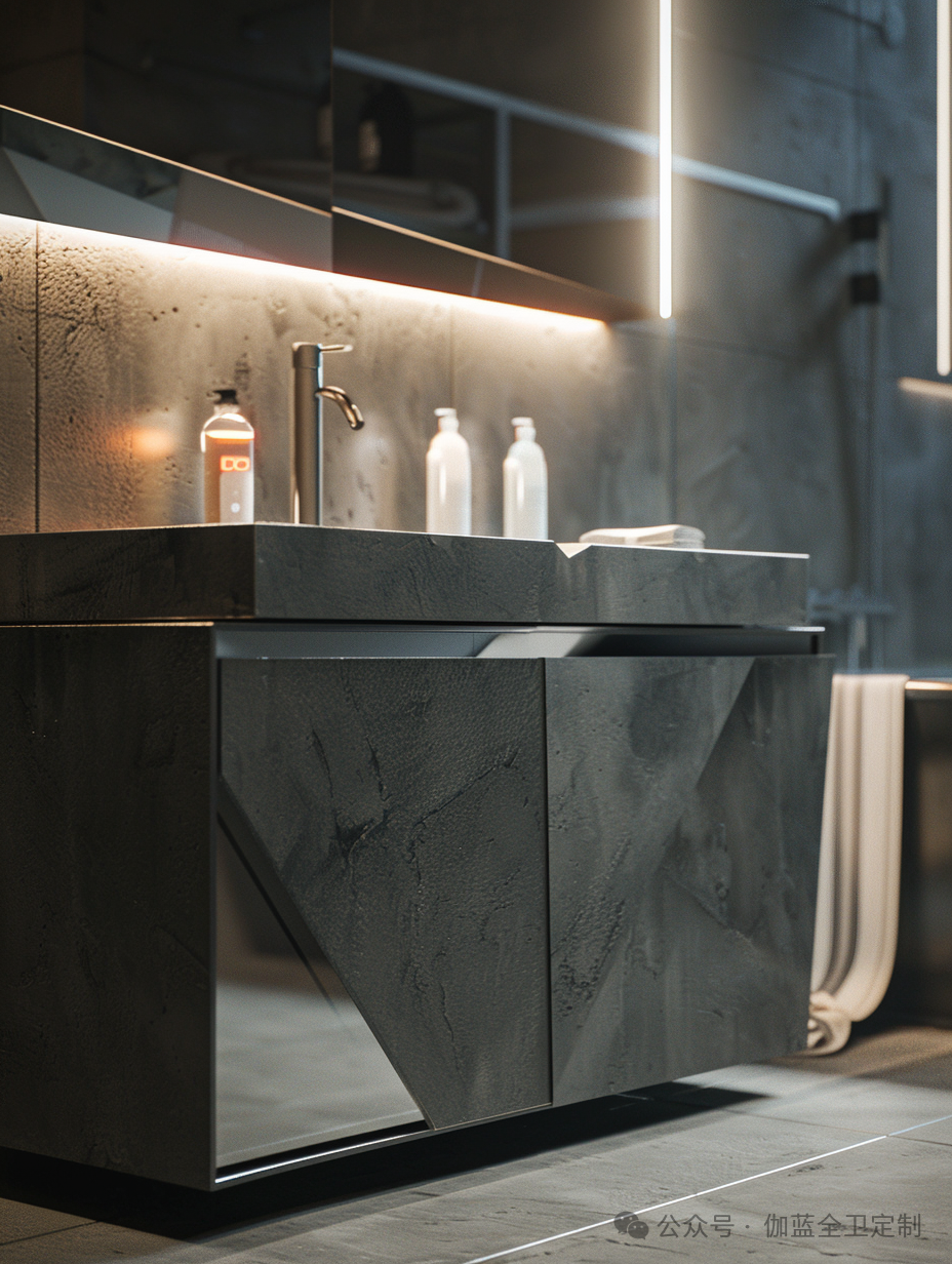 这一季的“城市之光·纽约”系列,通过几何切割、黑色磨砂和冷灰色调三种不同的设计手法,将现代简约风格的浴室柜完美呈现。每一款设计都从不同角度诠释了纽约这座不夜城的独特魅力,让你的浴室空间在繁忙的都市生活中,成为一个静谧而不失格调的私人天地。