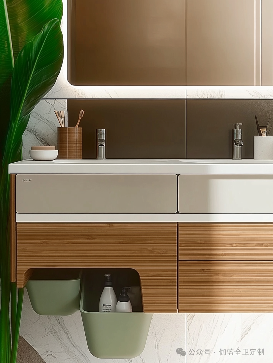 在菲利普·斯塔克的设计理念中,自然元素与现代技术的融合是其标志之一。这个系列的浴室柜完美体现了这一点,采用天然木材与高品质不锈钢的结合,呈现出简约而温馨的视觉效果。流畅的线条和自然的纹理,使这款浴室柜在功能性与美感之间找到了完美的平衡。