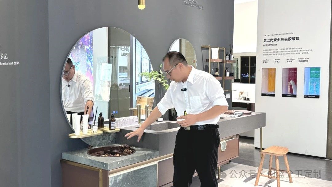 前后端链路打通为伽蓝产品提供了强大的保障。研发部经理赵小聪登场,为观众们详细解析了心海伽蓝的“全卫定制”本质、产品力及其优势。这一模式为终端消费者提供了更多的定制自由度,也为经销商开辟了更多的市场机会。赵经理的分享进一步展示了心海伽蓝在全卫定制领域的领先地位。