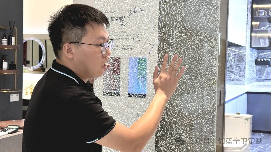 此外,淋浴房研发部经理关啟荣带领观众们参观了淋浴房、全景门的不同系列、讲解了产品的核心优势与卖点,并通过一场生动的夹胶玻璃与贴膜钢化玻璃的安全性对比试验,直观地展示了心海伽蓝对产品质量和安全性的极致追求。心海伽蓝产品的高颜值、高品质及其安全性,也为其赢得了广泛的市场认可。