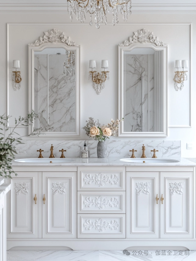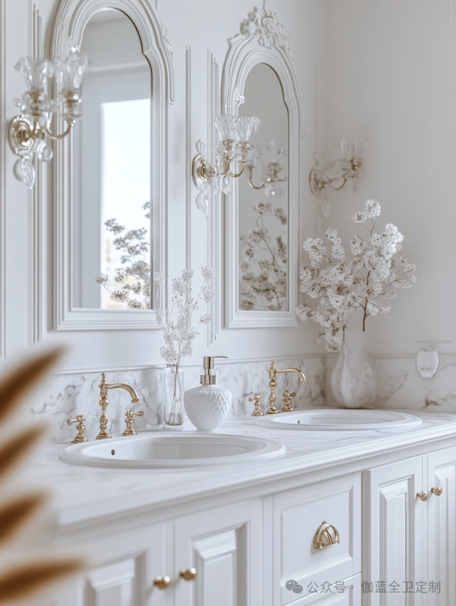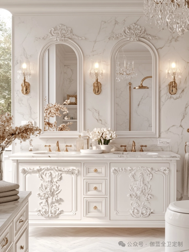 本期浴室柜设计展现着独特的风格与氛围。巴洛克的优雅,仿佛将我们带回到那个充满华丽与浪漫的时代。设计语言细腻而精致,线条之中都流淌着优雅的韵律。其风格既有着古典的庄重,又融入了现代的简洁,营造出一种独特的时空交错之感。