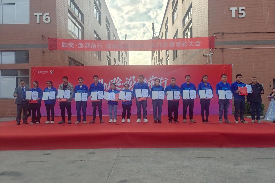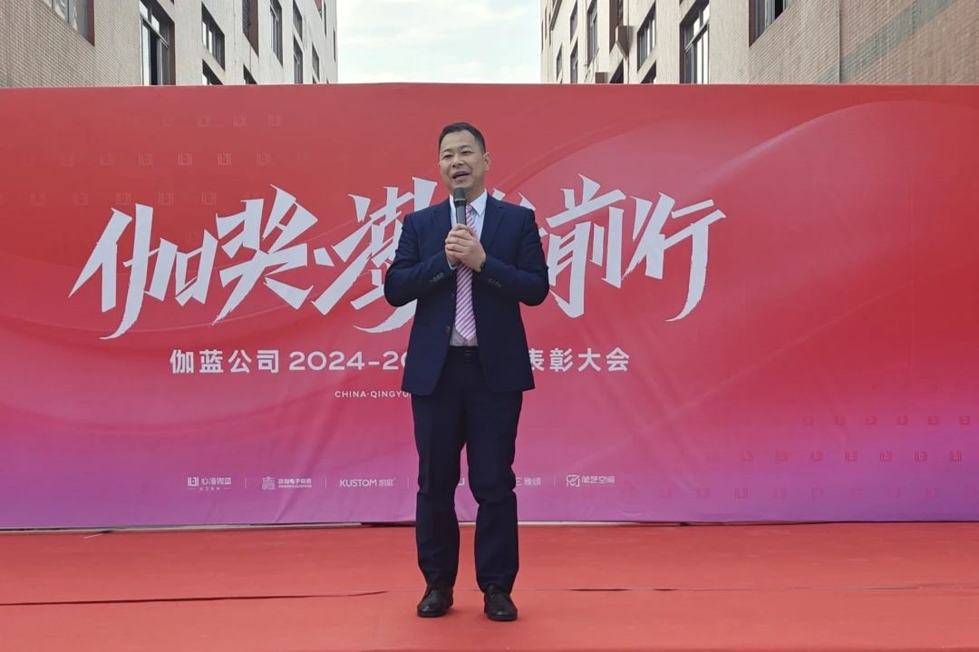 1月14日,伽蓝公司迎来了以“伽奖·澎湃前行”为主题的2024-2025年度表彰大会。(清远伽蓝于1月15日举办表彰大会)会议以感恩付出、表彰杰出、凝聚力量为宗旨,为伽蓝人搭建了总结过往与传达关怀的平台。会议的举办不仅仅是一场仪式,更是伽蓝文化的深刻体现,是全体伽蓝人向未来迈进的重要起点。