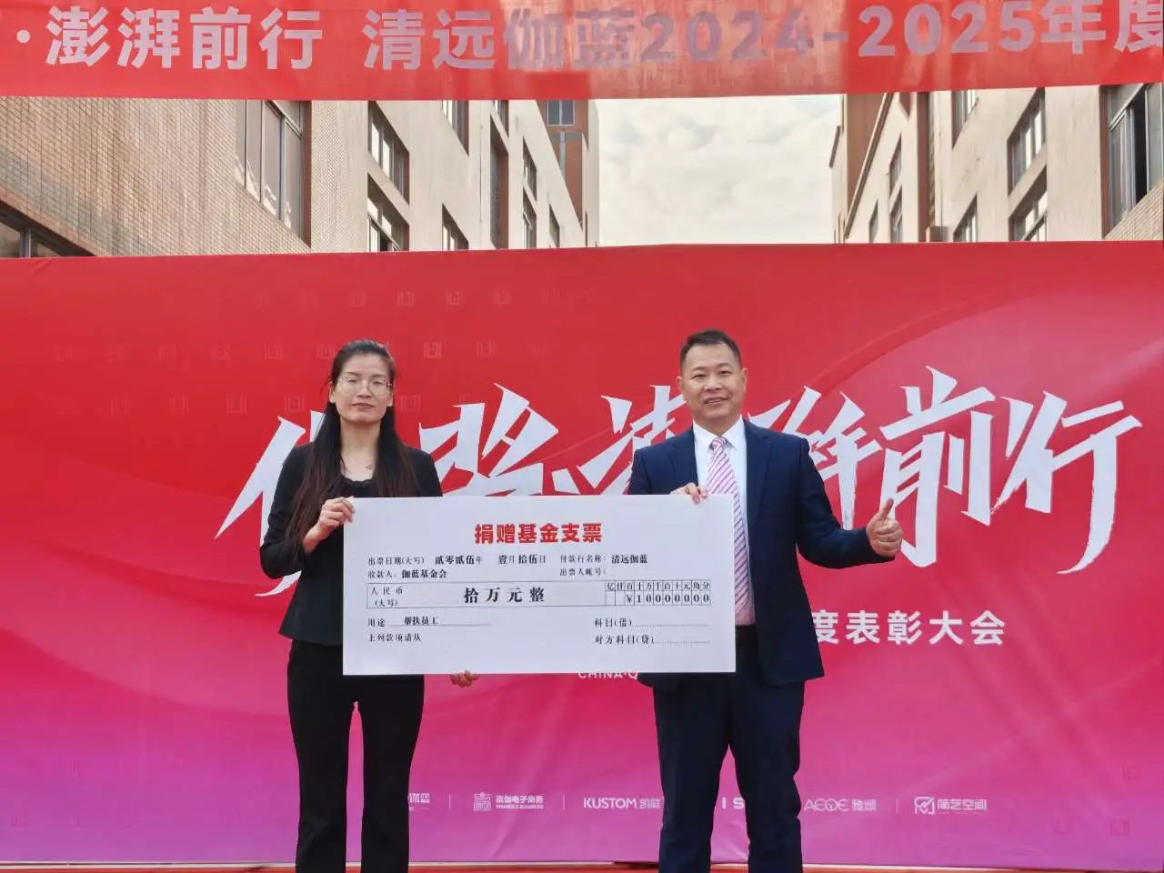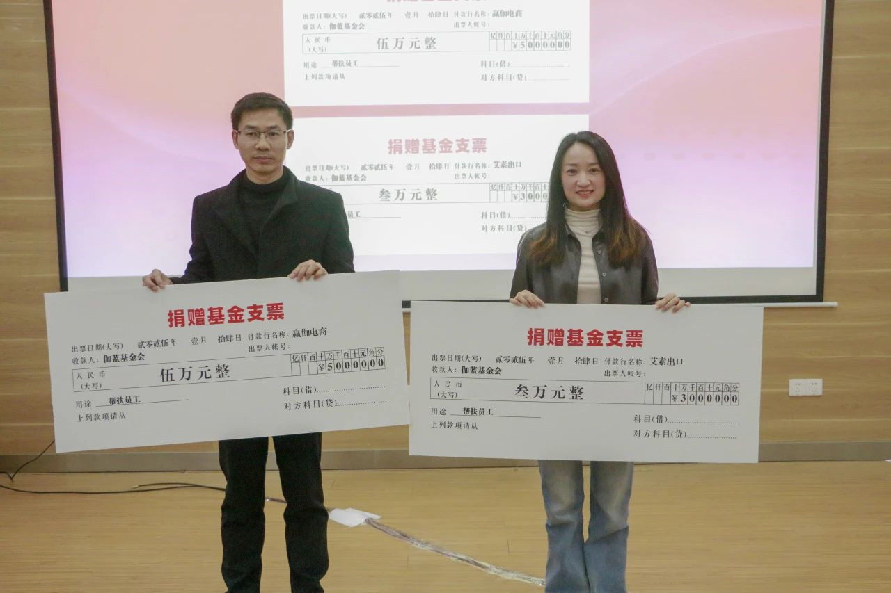此外,表彰大会上,按惯例发放了父母慰问金并公布了2024年度员工基金会的使用明细,赢伽电商总经理蔡勇与艾素出口总经理现场为2025年基金会注资,迎来现场掌声阵阵,基金会的设立旨在帮助有紧急及重要需要的伽蓝人,为员工解决后顾之忧。
