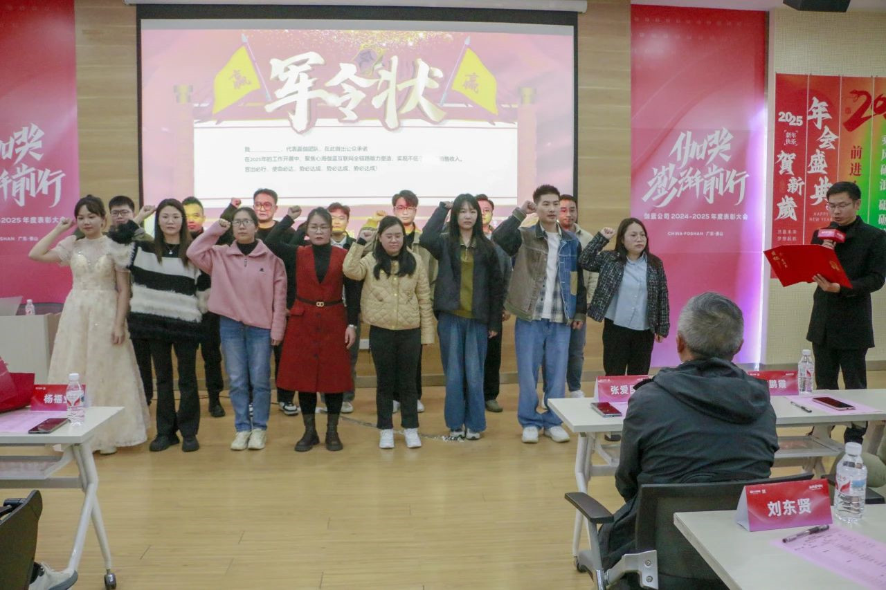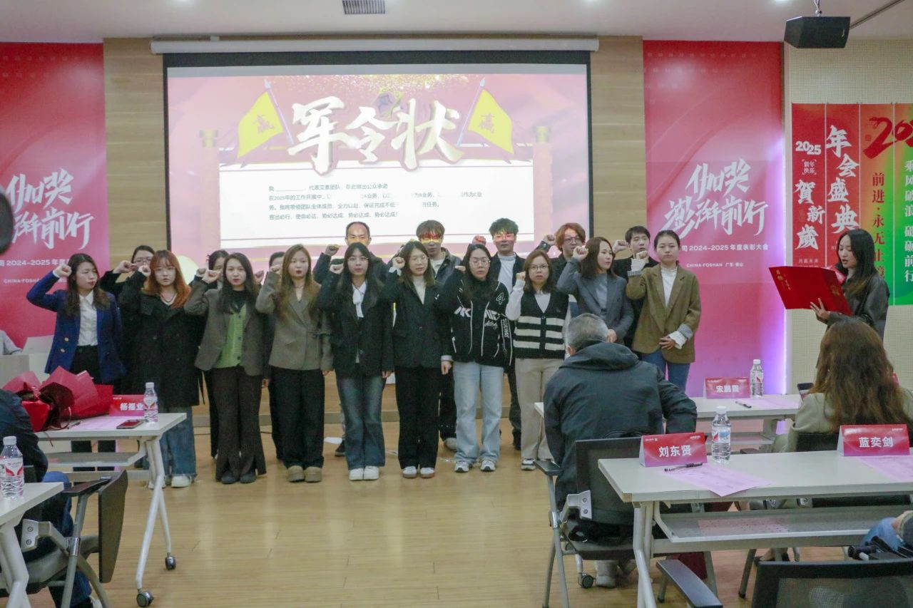 表彰结束后,各分公司各部门销售精英进行了庄严的企业宣誓仪式。伴随着部门领导的领誓,伽蓝人以坚定的语调,洪亮的嗓音庄严许下了对企业的承诺与对未来的期望:同心协力,携手共进,为伽蓝2025更辉煌的未来而奋斗!宣誓现场气氛热烈而振奋,所有伽人都充满了信心与力量。