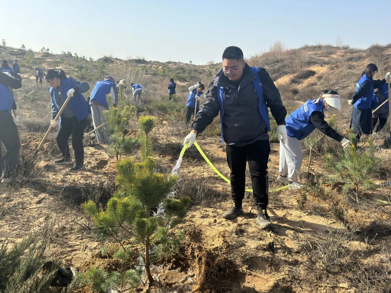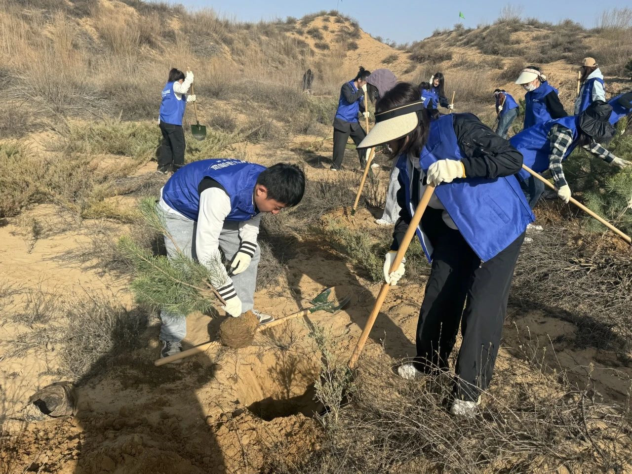 榆林的风沙曾是自然的叹息,如今却成了企业、学校与自然对话的课堂。每年春天,伽蓝洁具的员工与榆林高新二小的师生们并肩而立,铁锹破土、扶苗定根、清水润土,以双手为梭,在沙地上编织绿色的经纬。