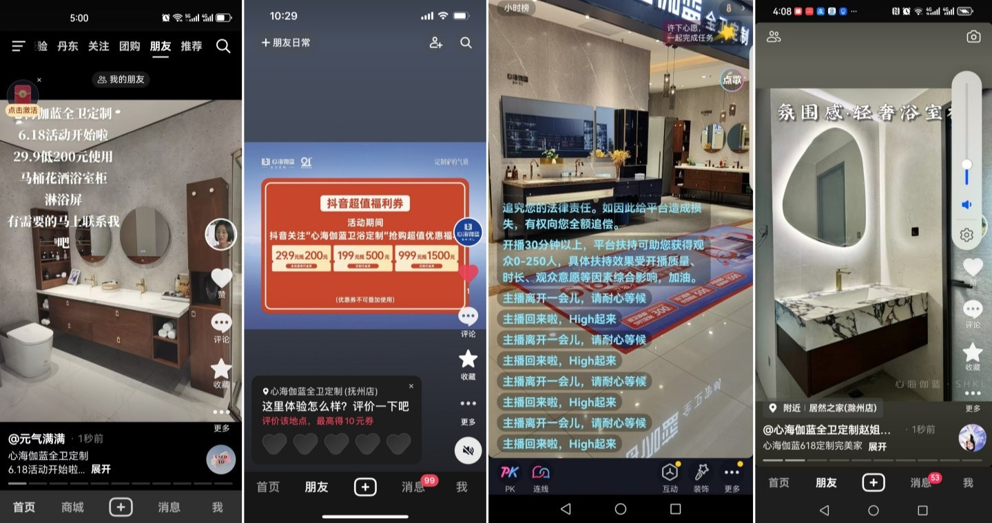 伽蓝总部联动区域门店打造抖音内容矩阵,通过抖音线上引流,吸引更多客户到店。同时,门店导购化身“私人定制顾问”,通过微信为客户在线答疑解惑,并邀约客户到店,促进成交。