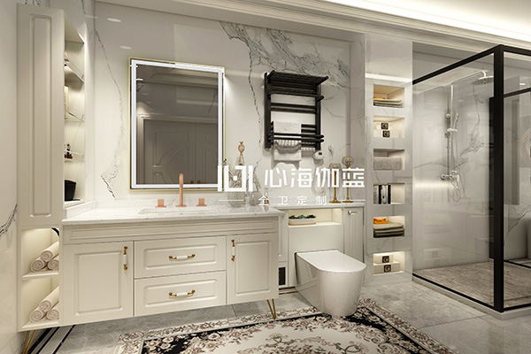 素雅的白色美式风格浴室柜,布局营造酒店超大空间感。
