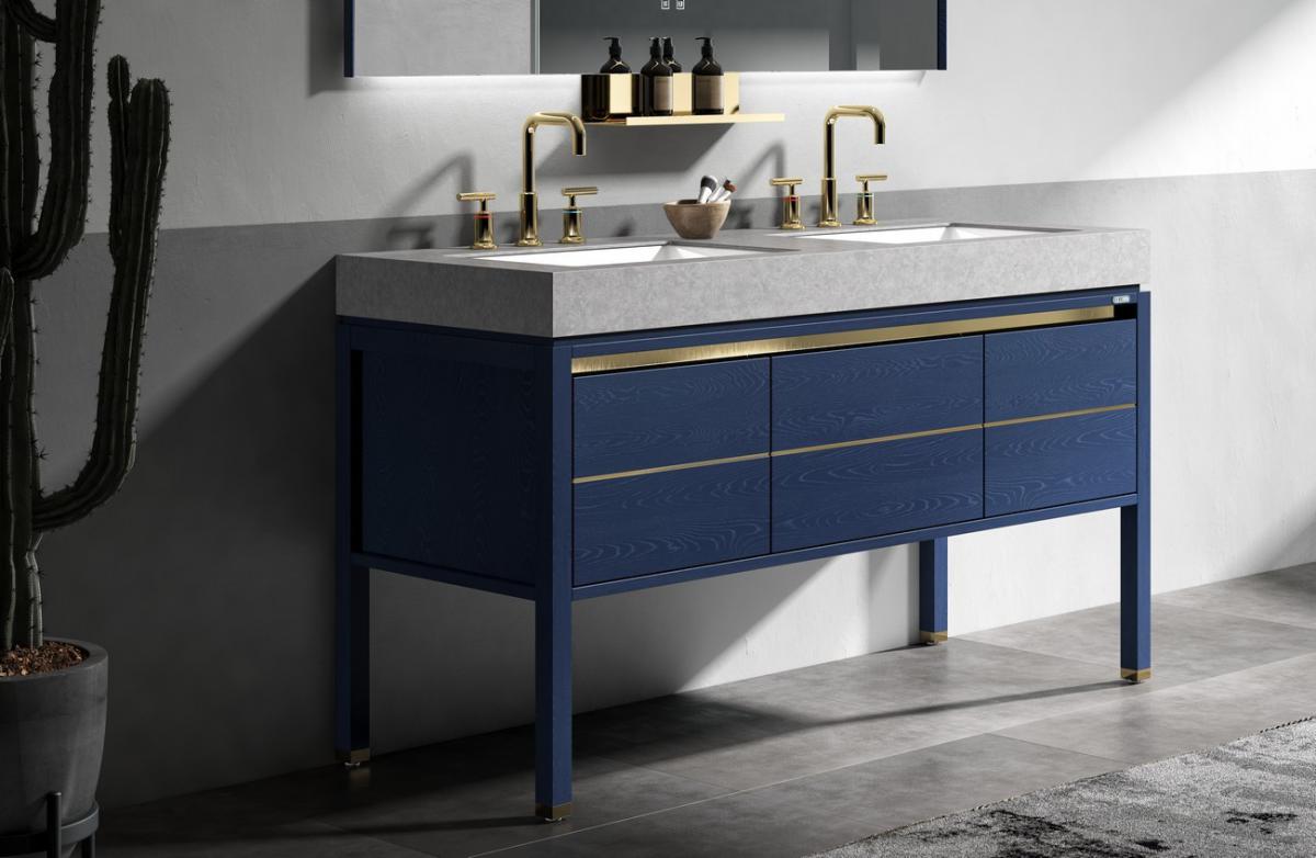 【主柜颜色】:星空蓝+清漆色(抽屉)+描金+不锈钢