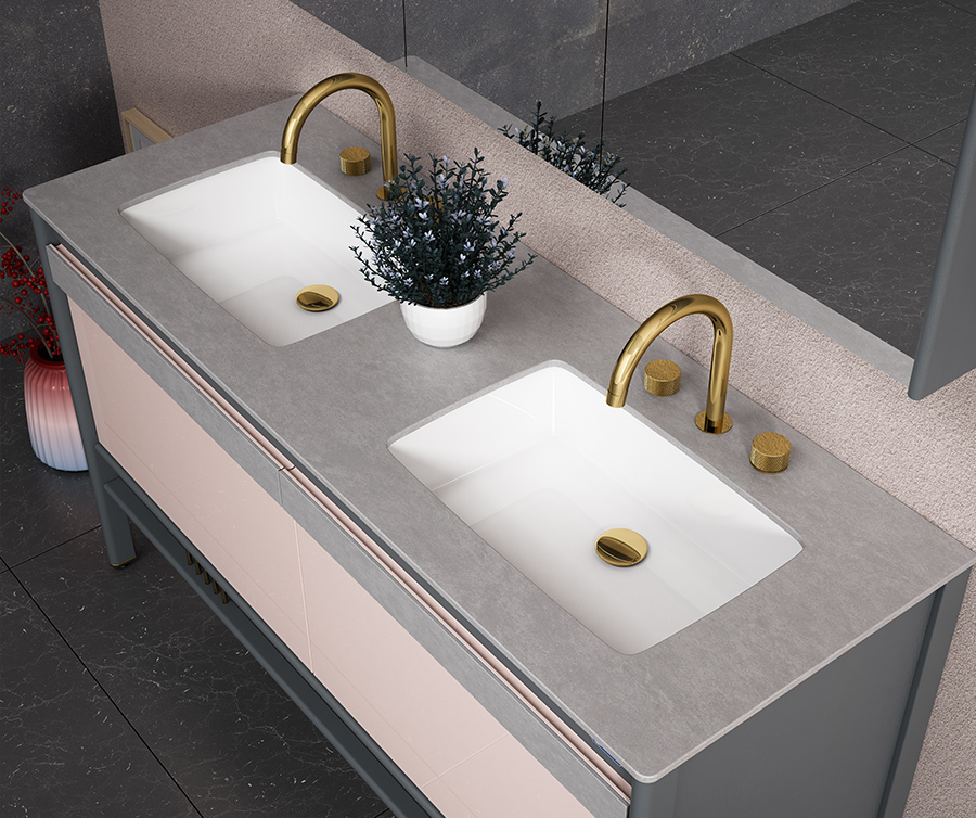 【主柜颜色】:罗布灰开放漆 + 樱草粉 ( 亮光 )+ 钛金拉丝