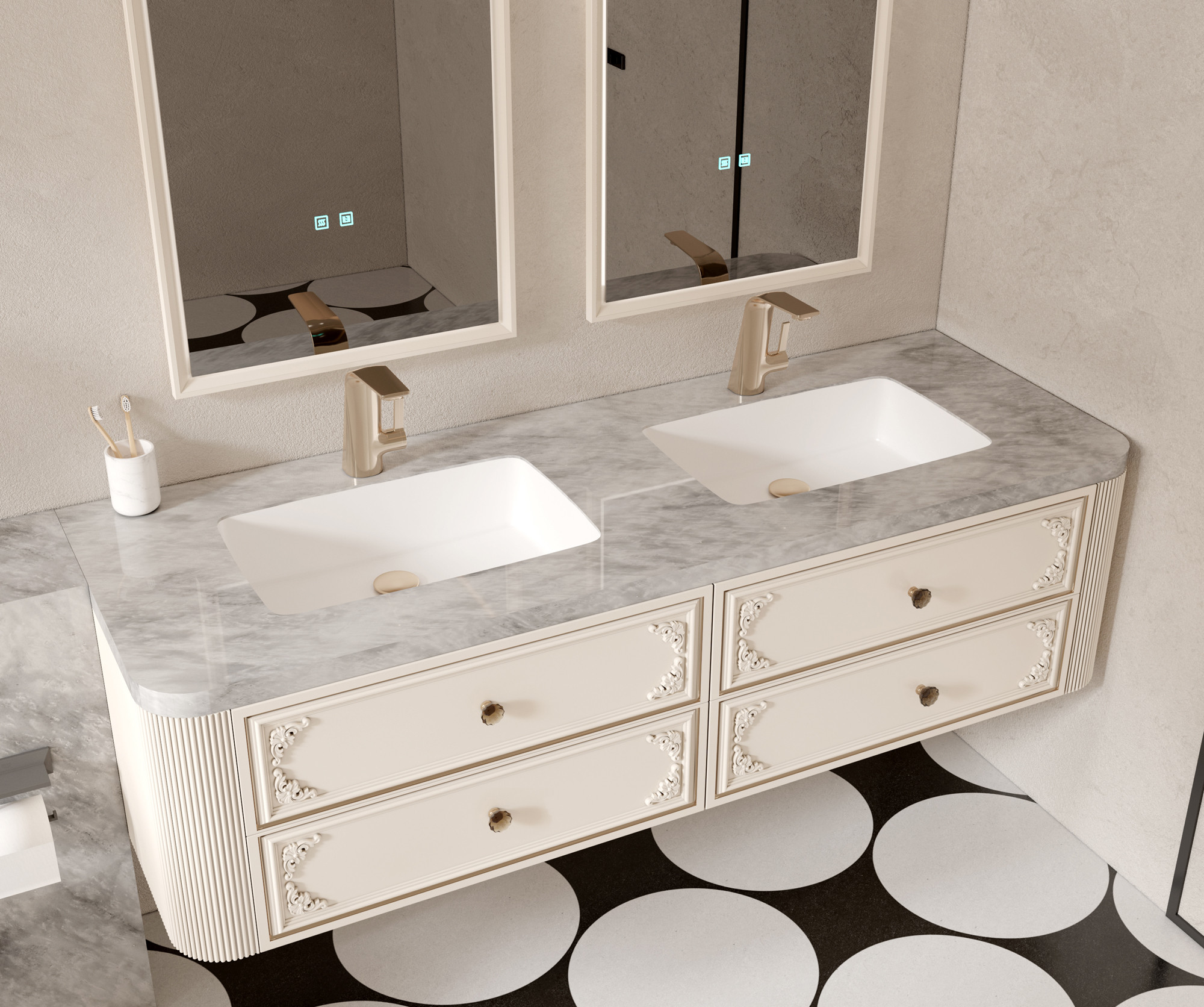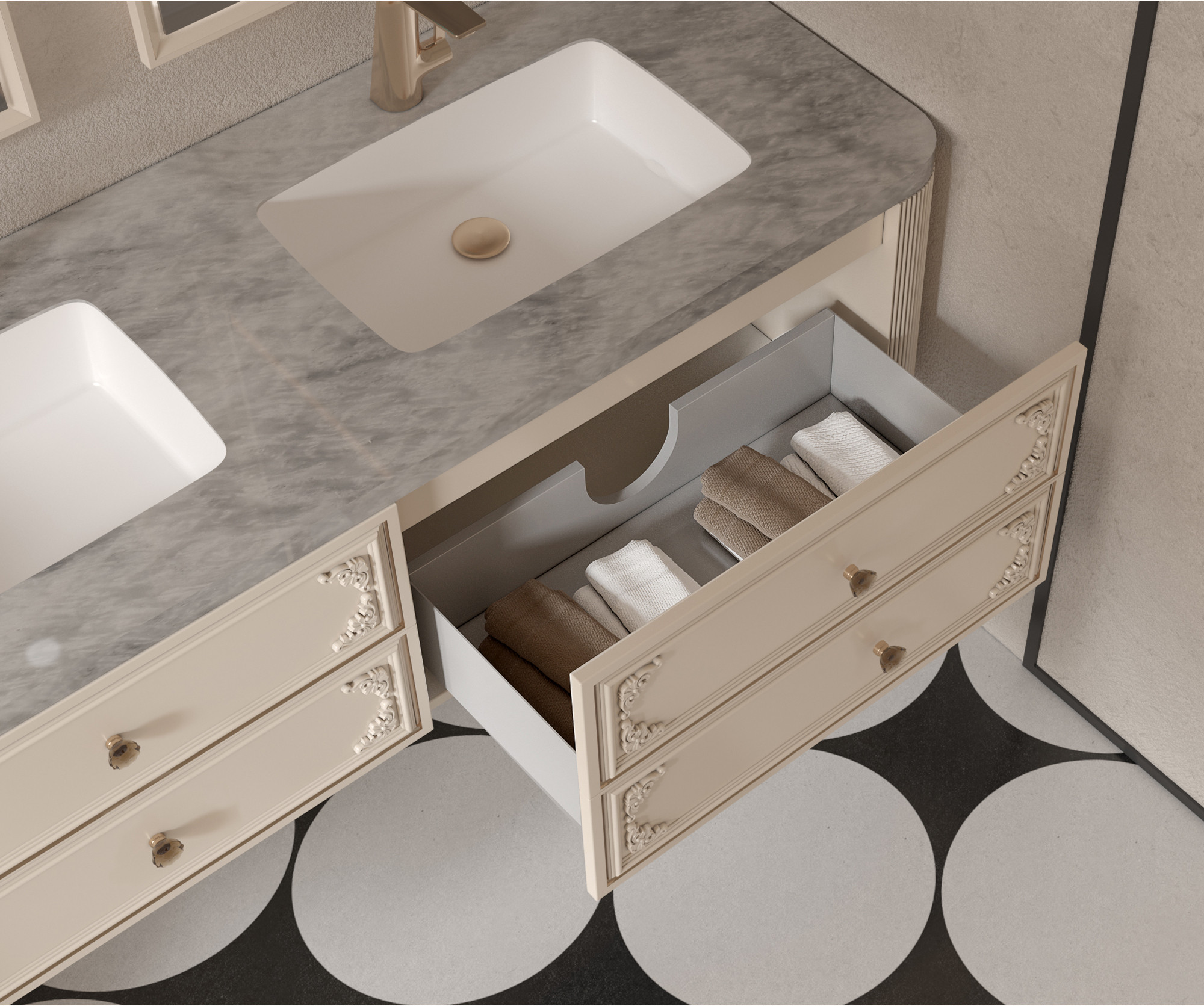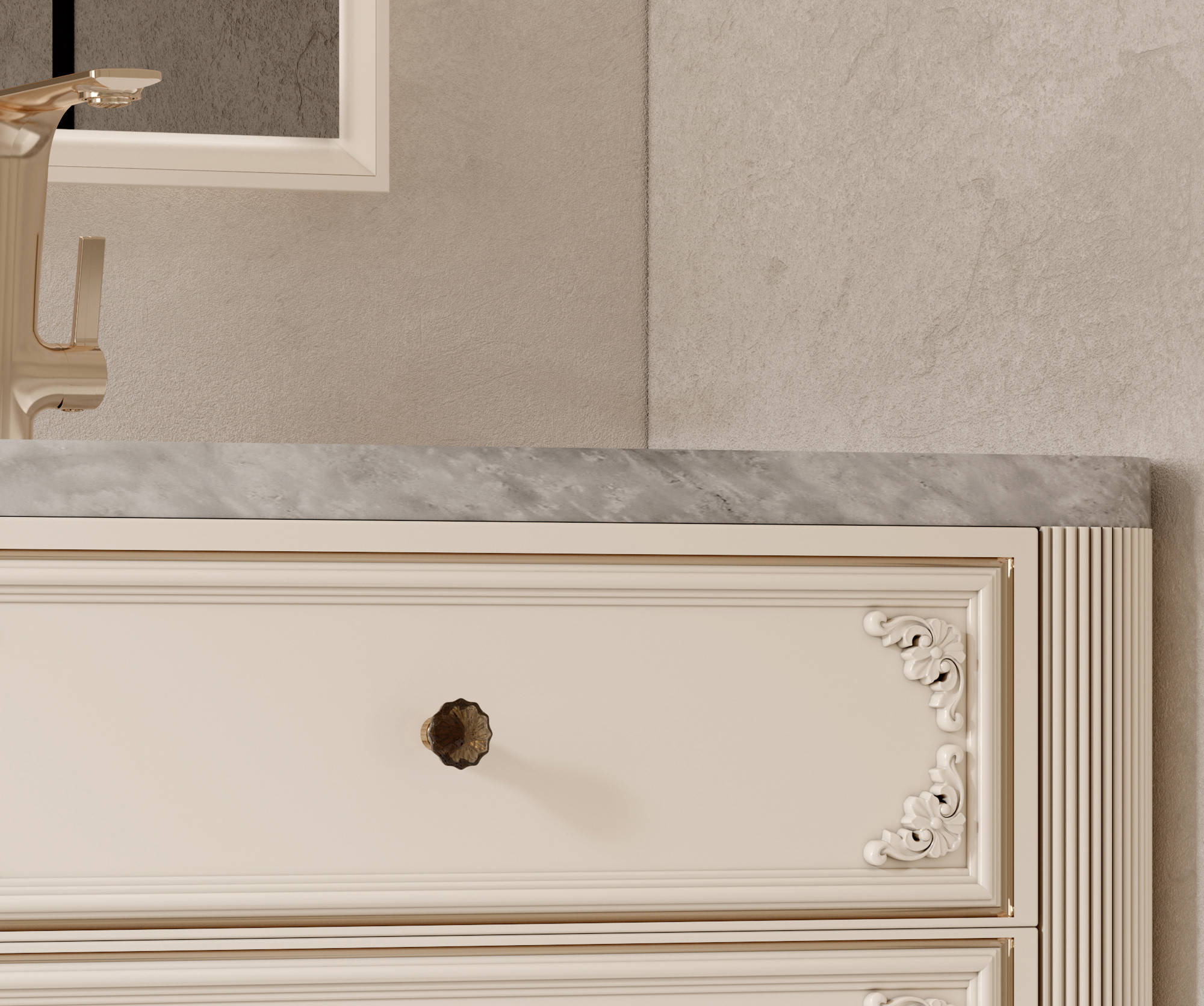【主柜颜色】:奶油霜白+抽面描金