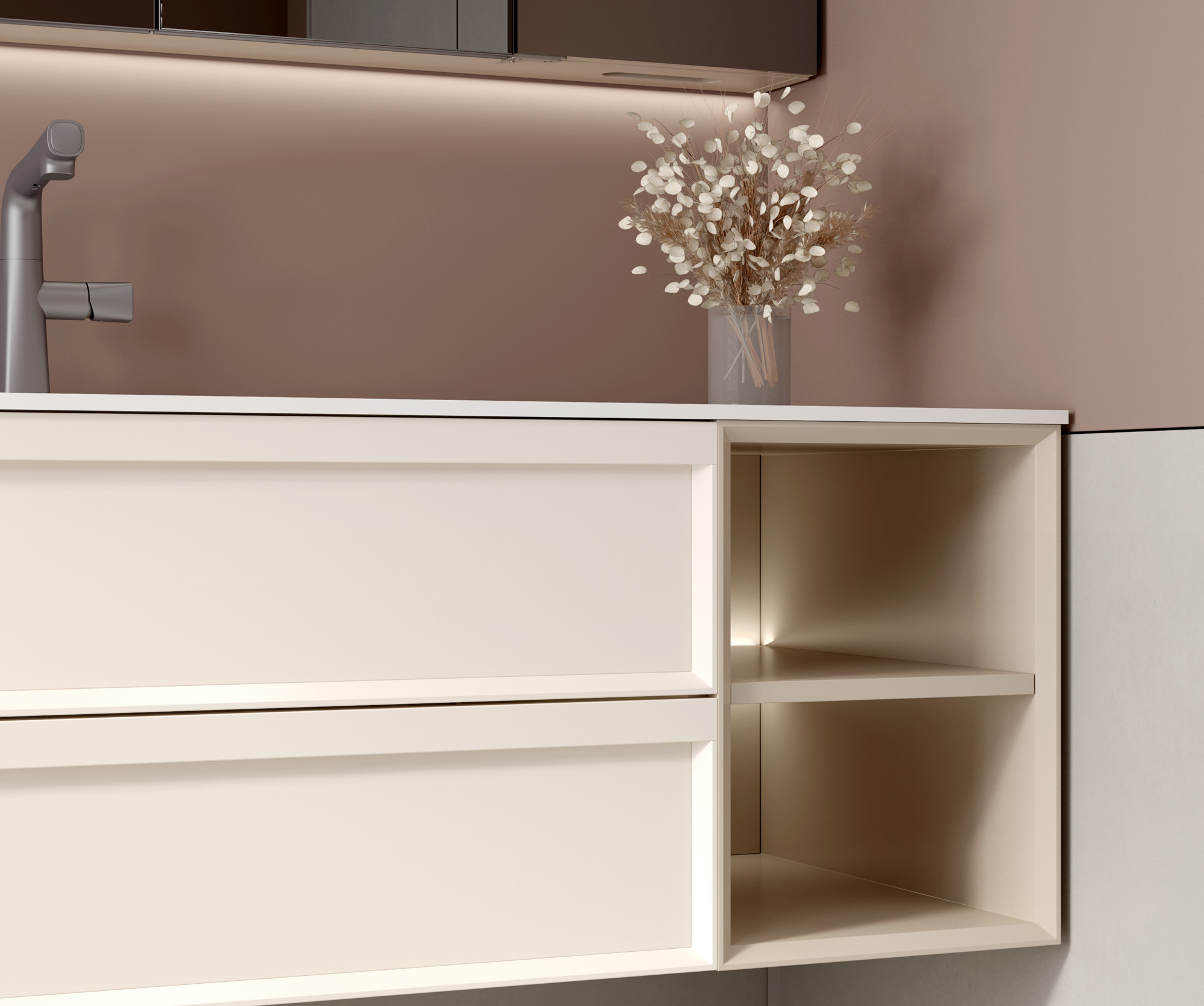 【主柜颜色】:燕麦灰免漆板+奶油霜白实色漆