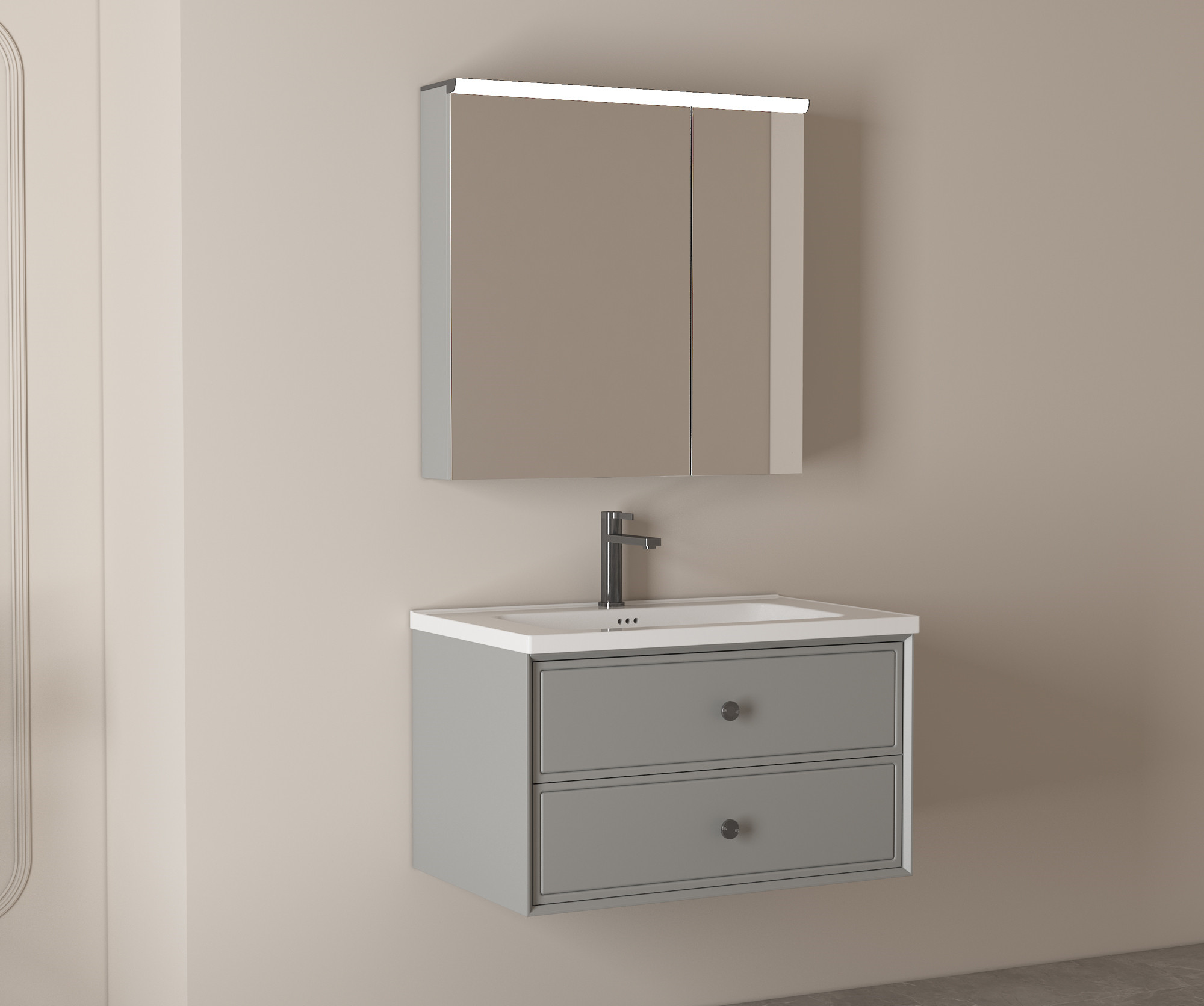 【主柜颜色】:银河灰免漆板+银河灰油漆