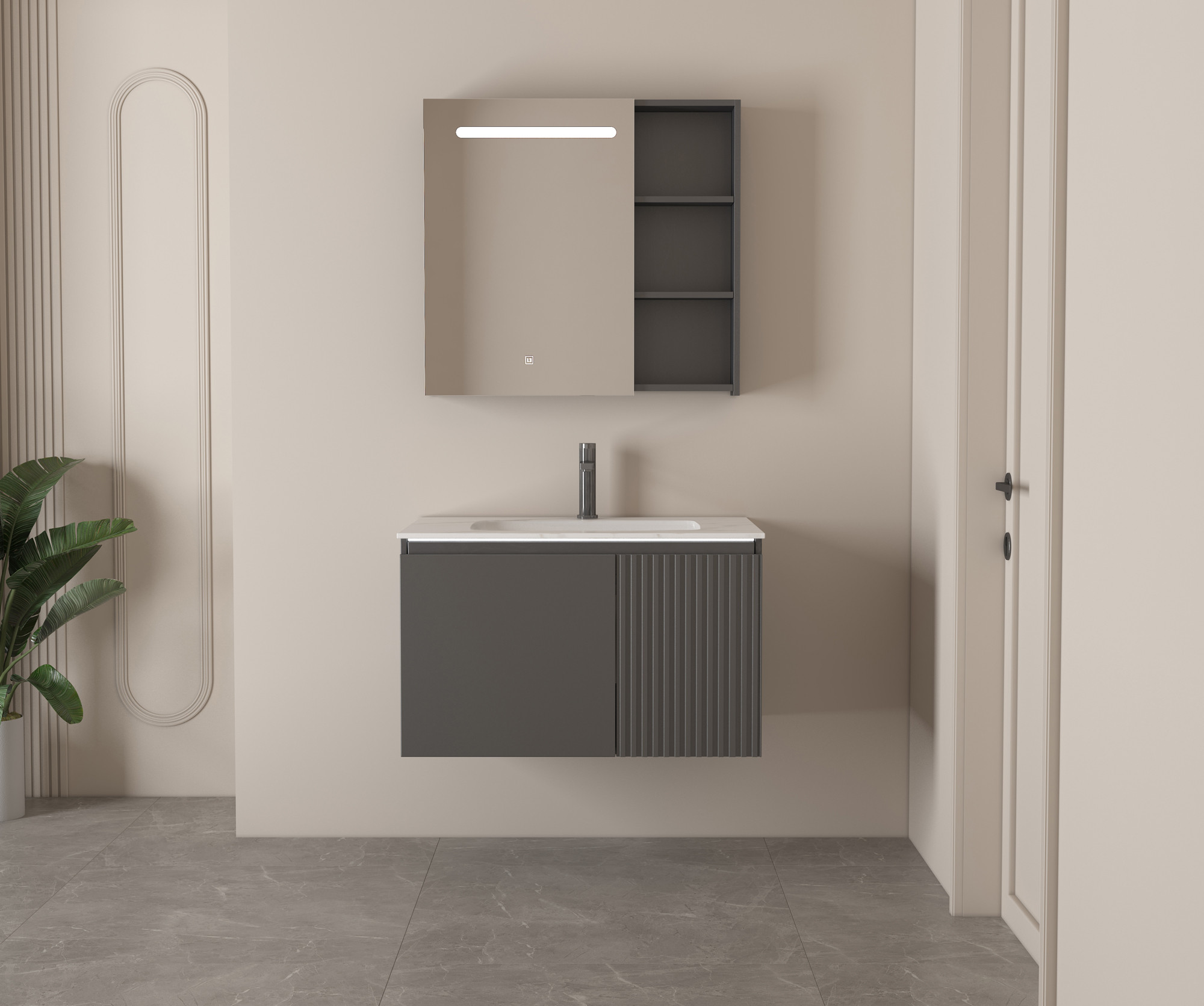 【主柜颜色】:铁灰树皮纹免漆板+石墨灰油漆