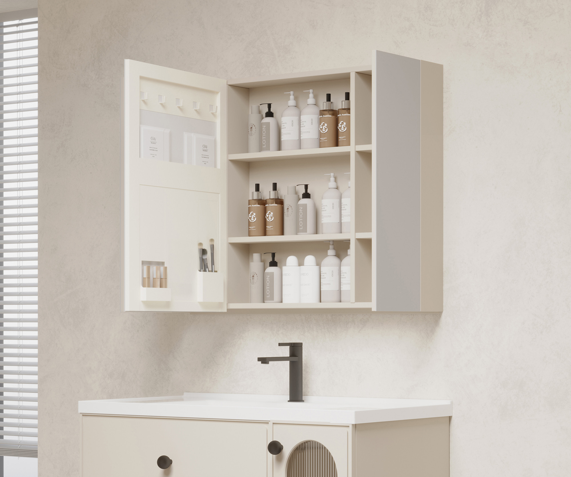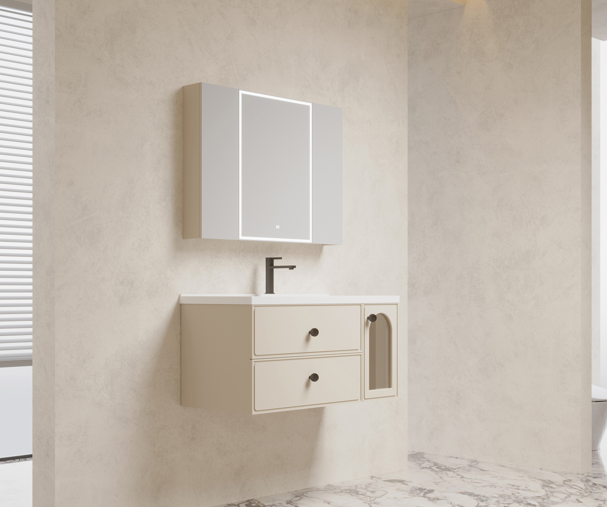 【主柜颜色】:卡其灰免漆板+羊绒灰实色漆