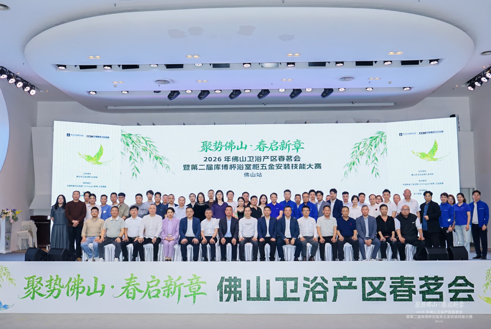 会上,张爱民董事长作为启动嘉宾,与一众卫浴企业代表上台,共同按下启动按钮,宣告第二届「库博杯」浴室柜五金安装技能大赛佛山站正式启幕。此项赛事的举办将有助于卫浴行业实现品质与服务的双重升级。
